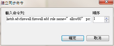 輸入“netsh advfirewall firewall add rule name=”allow80” protocol=TCP dir=out loalport=80 action=block” , 並設定順序為“1” , 如下圖