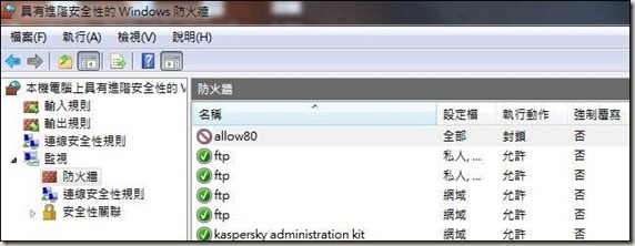 上面範例完成後,檢查Firewall設定回得到如下圖結果: